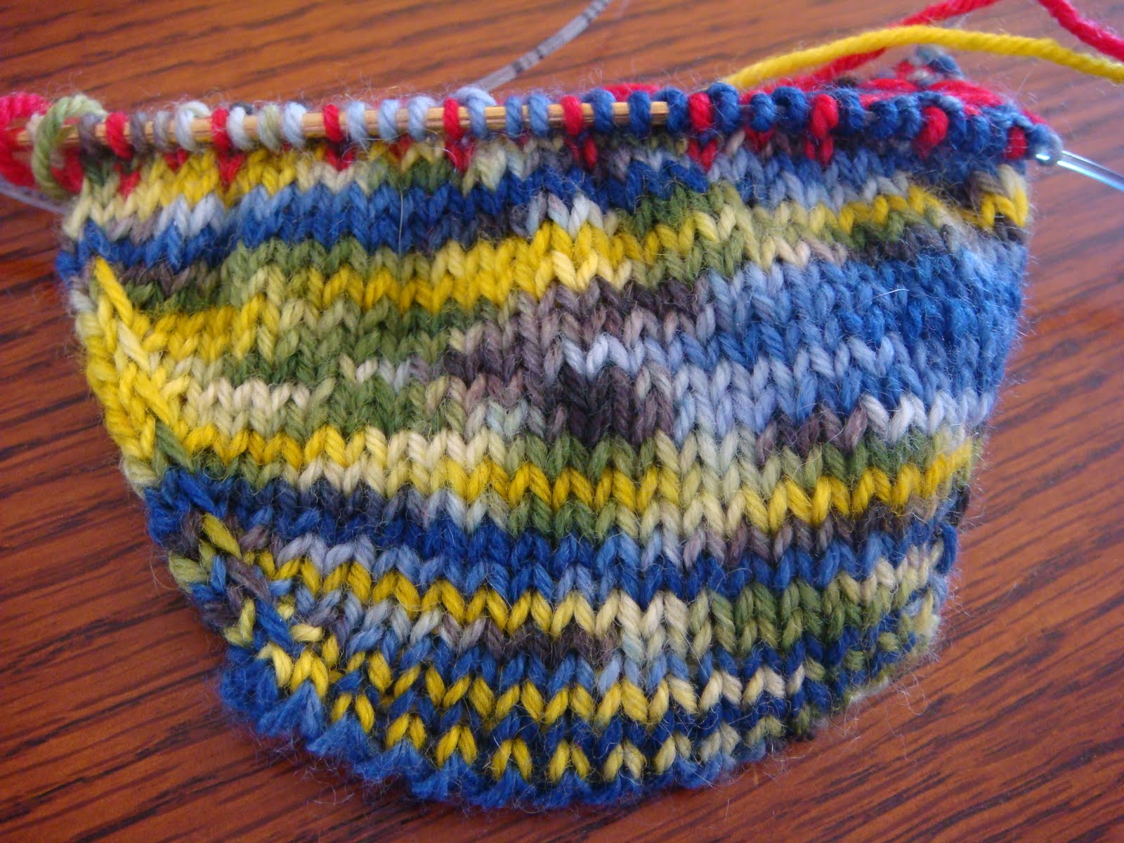 Saturday morning we had a lazy continental breakfast and then I headed over to my first class of "Reknittable Heels and Toes" taught by Jill Draper. Since the heels are where my socks tend to wear out first I thought this would be a great technique to learn. It was challenging because I used too light weight of a yarn to move quickly but I did eventually finish the heel. The most challenging aspect of this class was paying attention to making both sides even with the yarn overs. I'm really looking forward to using this heel technique in the next pair of socks that I make for the men in my family who tend to have rough heels and wear out that spot quickly.